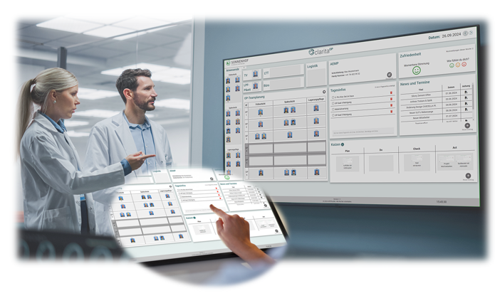 þ Alle Termine über das Huddleboard erfassen und auf Tablets im Patienten & Bewohnerzimmer anzeigen